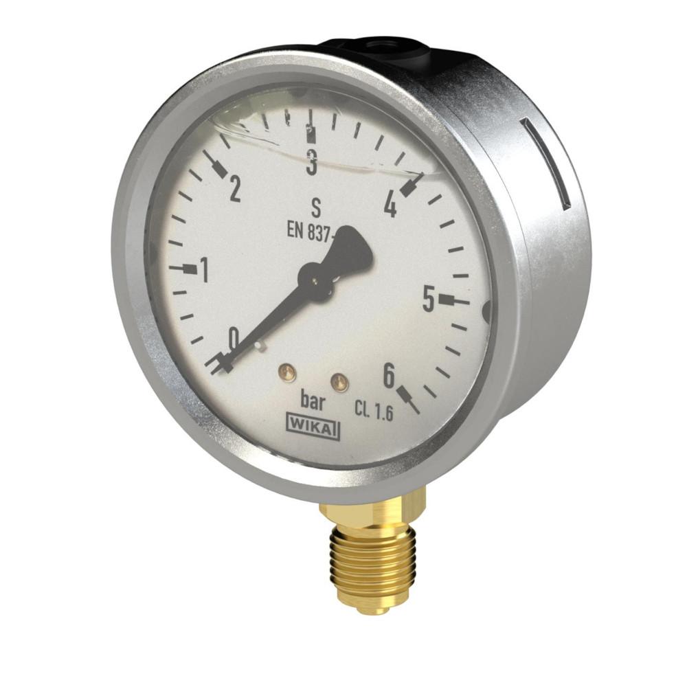 - Det glycerinfyldte Bourdon-rørmanometer med en diameter på 63 mm og G 1/4-tilslutning er en robust trykmåler til pålidelig visning af trykværdier, selv under vibrationer og pulserende belastninger.