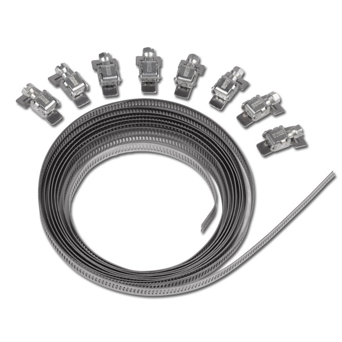 Endless tape kit - rustfrit stål rem - længde 3 eller 5 m - 8 foldede hoveder - pris pr sæt