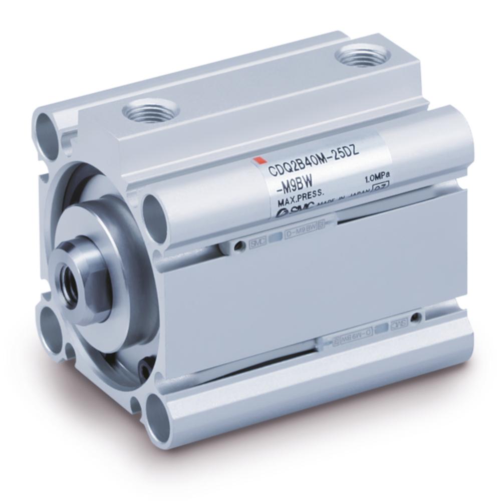 - CDQ2ATF-DMZ dobbeltvirkende kompaktcylinder med udvendigt gevind og gevindboring på begge sider er robust og kompakt i design.